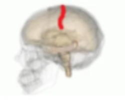 - Cerebral cortex, especially around the central sulcus. This is the central groove that vertically separates the frontal lobe from the brain areas behind it. Indicated in the image below with the red line: