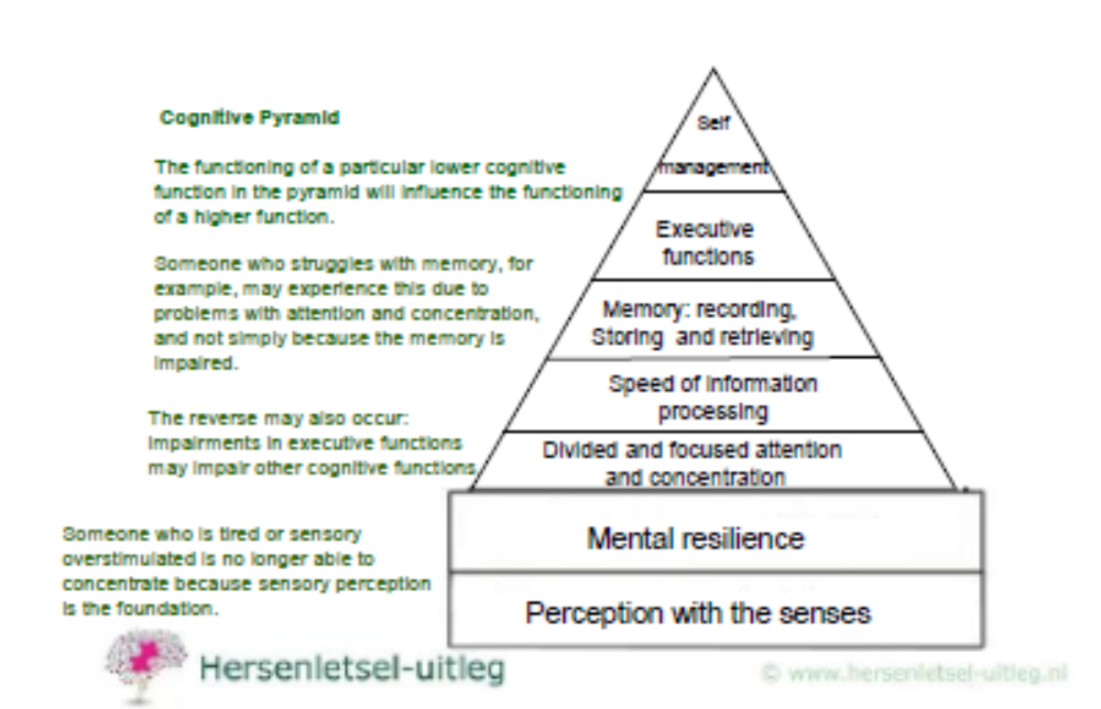 The functioning of a particular lower cognitive function in the pyramid will influence the functioning of a higher function.